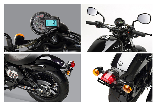 성능면에서는 아퀼라 125에 새로 개발된 60도 V형 2기통 엔진이 탑재되어 있다는 점이 가장 큰 특징이에요.
